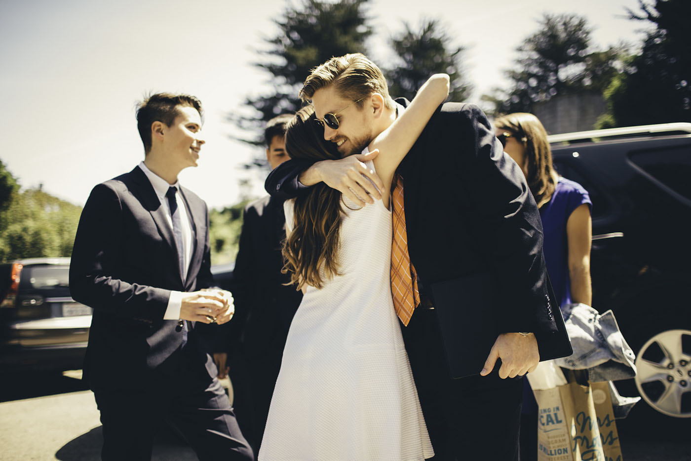 My fiancé proposed on the Fourth of July. My mother asked us to go to the backyard to get some chairs and he took me by the shed where we could see all of the fireworks. He kissed me, then he took the ring box out of his pocket and asked me to be his wife. He was shaking a little. The proposal was a little silly but perfect, just like him." — Jeska Cords